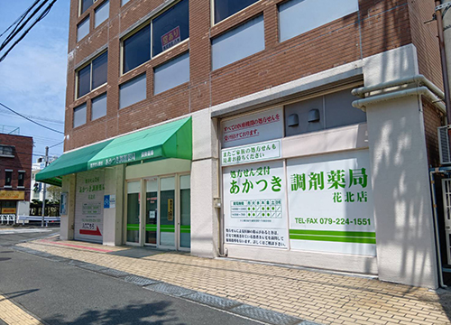 当薬局は耳鼻科・皮膚科のクリニックの隣で、JR播但線の高架下にあります。